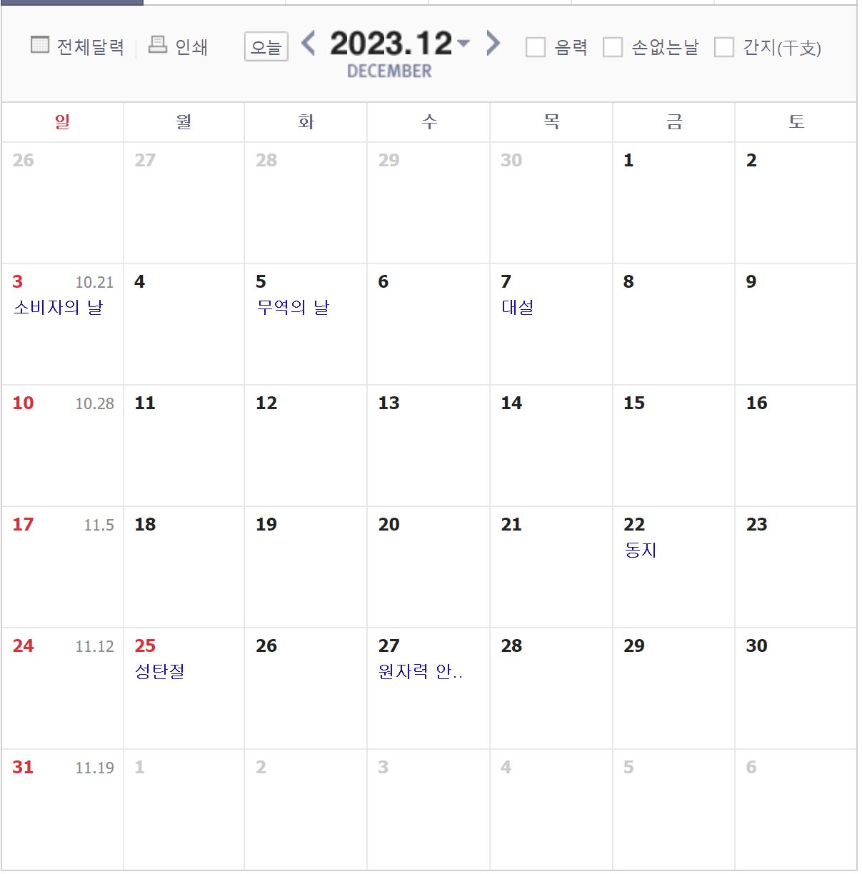 -성탄절 :12월 23일 토, 24일 일, 25일 크리스마스가 월요일로 총 3일 쉽니다