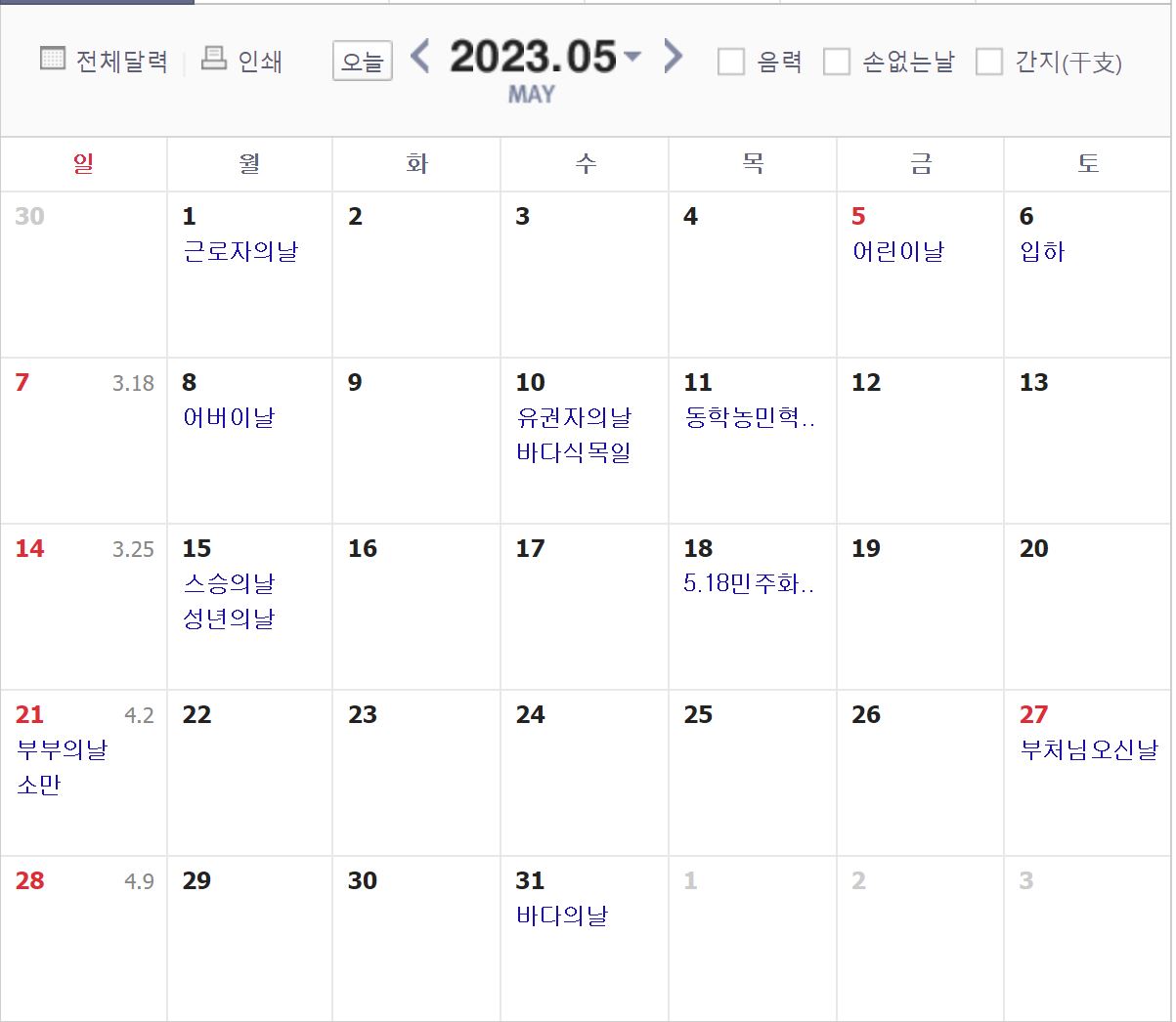 -부처님 오신날 5/27 (토요일이나 대체공휴일이 아닙니다.)